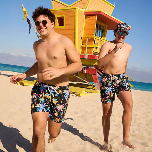 Make a splash in new swimsuits for men, featuring water shorts and board shorts doused in island inspired hues and prints.